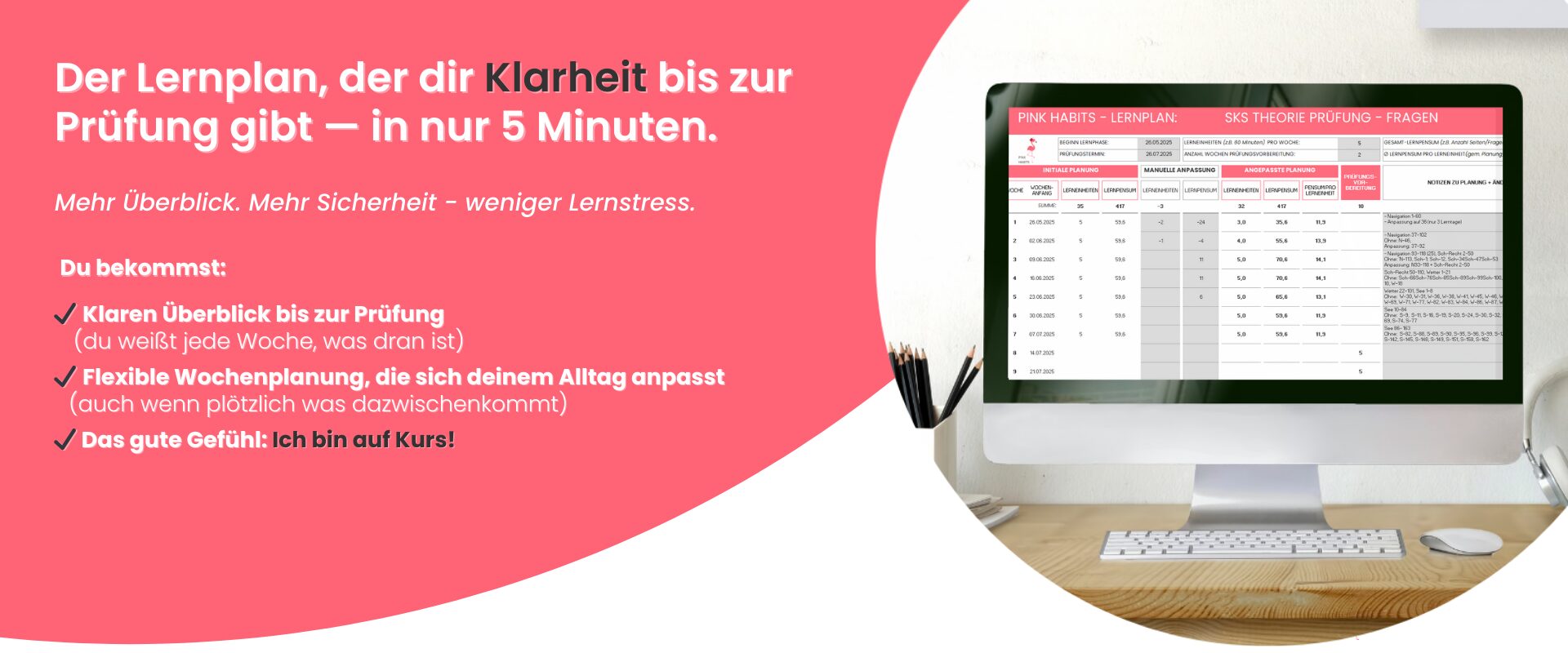 Mit dem Pink-Habits Lernplaner…